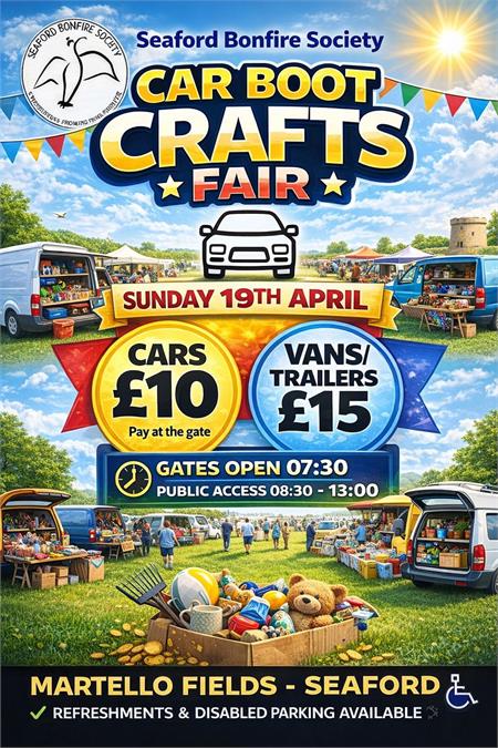 Seaford Bonfire Society is holding a number of Car Boot and Craft Fairs at Martello Field, starting this Sunday. Dates: Sunday April 19th